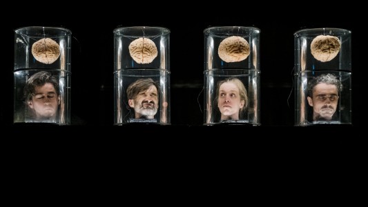 Zu Beginn unserer Stückentwicklung steht eine nahe Zukunft, in der die Philosophie des Transhumanismus Realität wurde. Wir behaupten (künftiges) ewiges Leben, in dem wir die natürlichen Grenzen unserer biologischen Körper verlassen haben und uns in Datenspeicher – in die Cloud – speisen. Unsere eingefrorenen Körper lassen wir in der physischen Welt zurück.